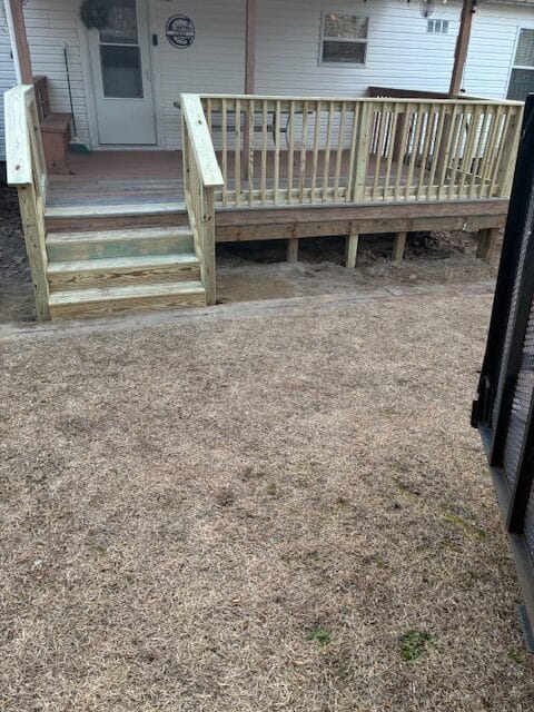 Today, two of our volunteers traveled to the home of an elderly resident in western Harnett County to completely rebuild her deck. The photos below show the finished result, along with images from each stage of the rebuild.