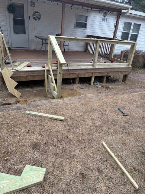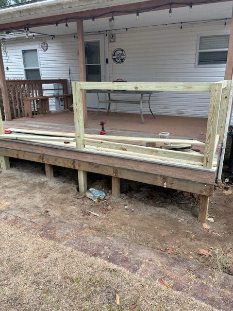This project was completed for an elderly gentleman in Cameron who needed a sturdier, more accessible deck to support safe movement at home. After recently suffering a stroke, he is now living with blindness, and a properly built deck will make a meaningful difference in his day-to-day mobility and independence.
